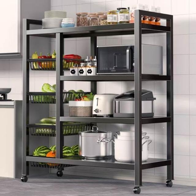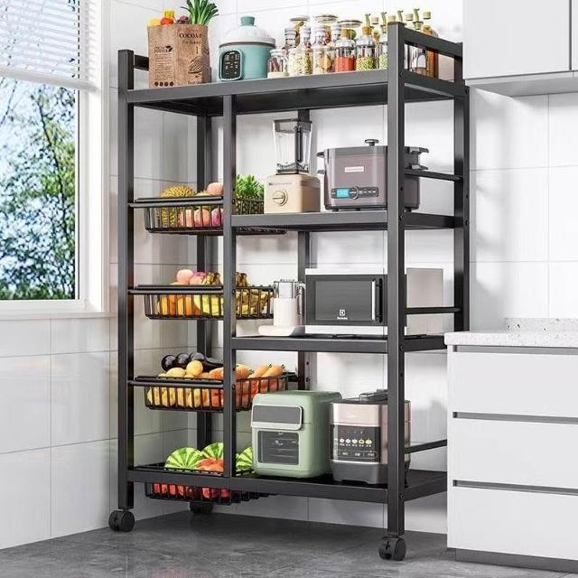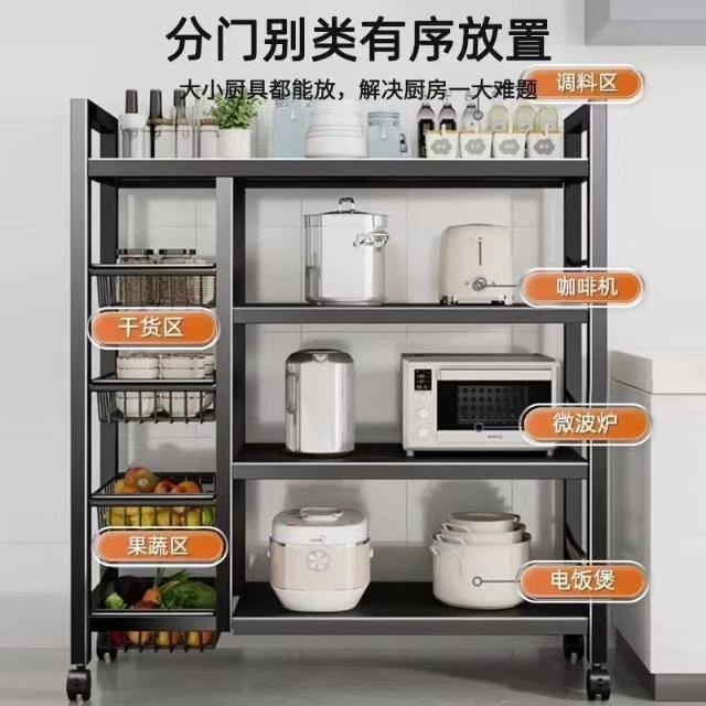 小推車多功能置物架臥室帶輪零食架廚房落地多層移動微波爐收納架