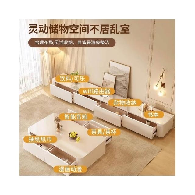 免組裝 简约现代電視櫃 實木碳鋼收納櫃 北歐輕奢現代茶几桌 落地茶幾電視櫃組合