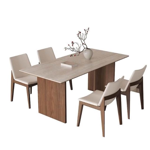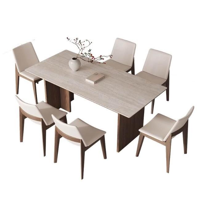 實木洞石岩板餐桌椅餐桌組合小戶型現代家用長方形飯桌簡約桌子