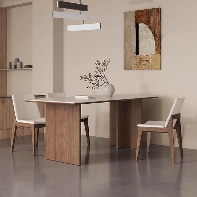 實木洞石岩板餐桌椅餐桌組合小戶型現代家用長方形飯桌簡約桌子