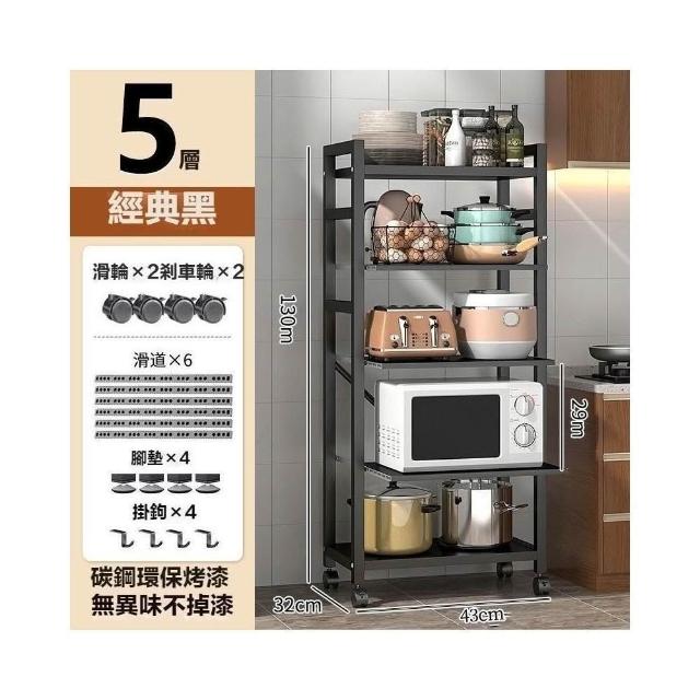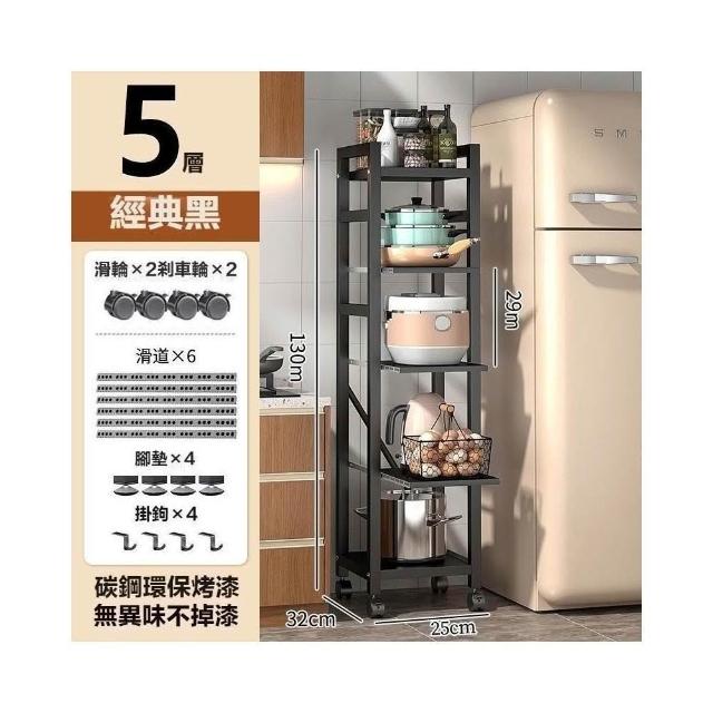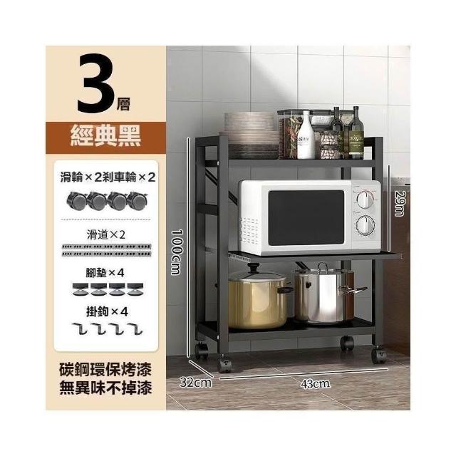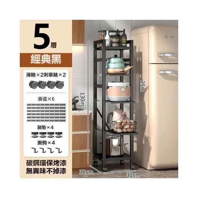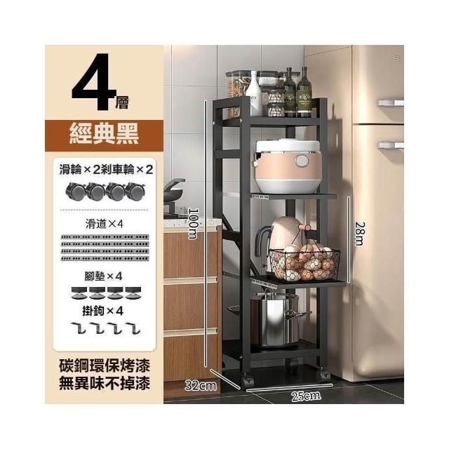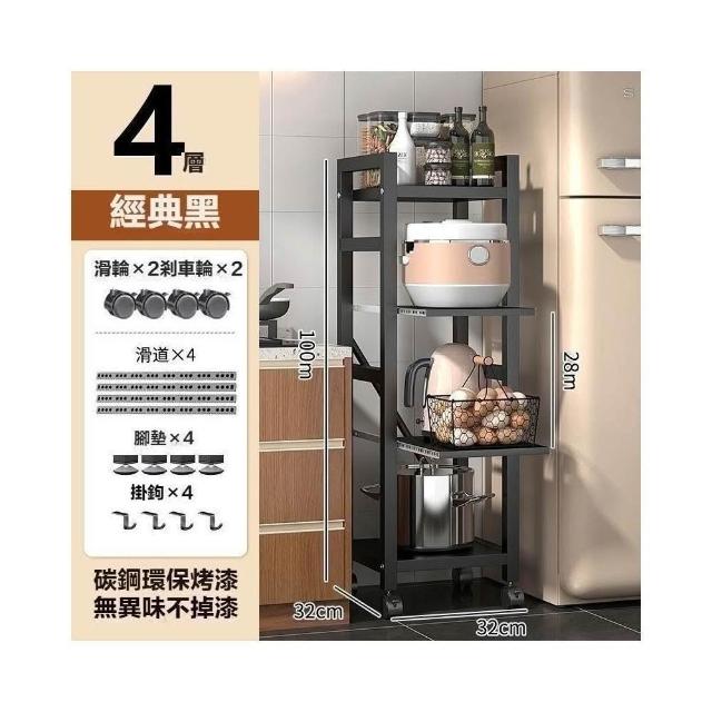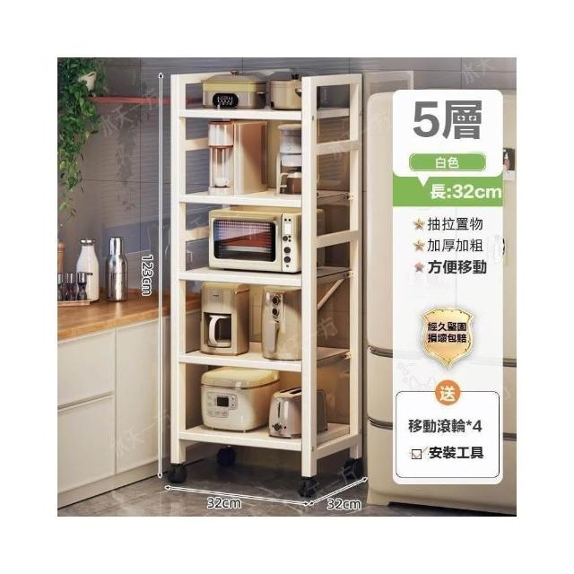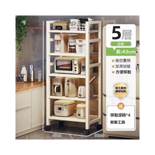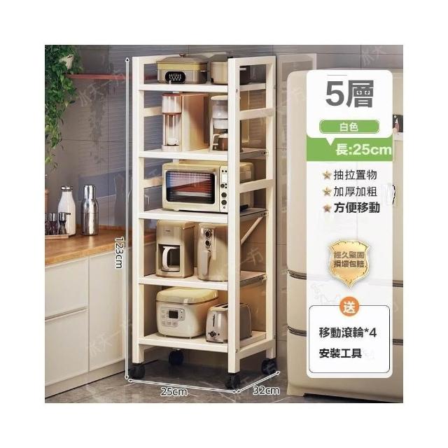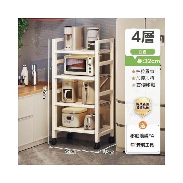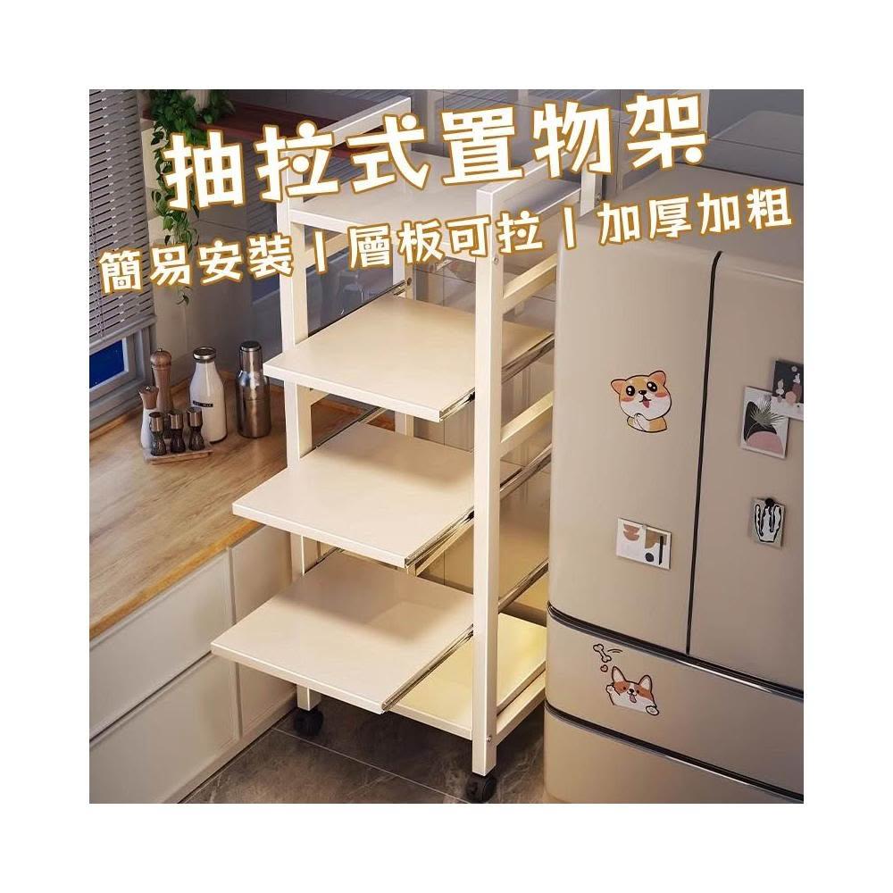 抽拉式廚房多層置物架 落地多層夾縫收納架 家用烤箱微波爐置物架