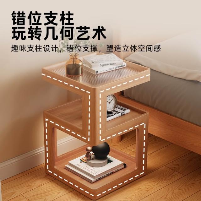 🎇造型特色帶燈床頭櫃 帶燈實木床頭櫃 床頭置物架 簡約現代小型櫃子 2025新款原木風超窄小邊幾