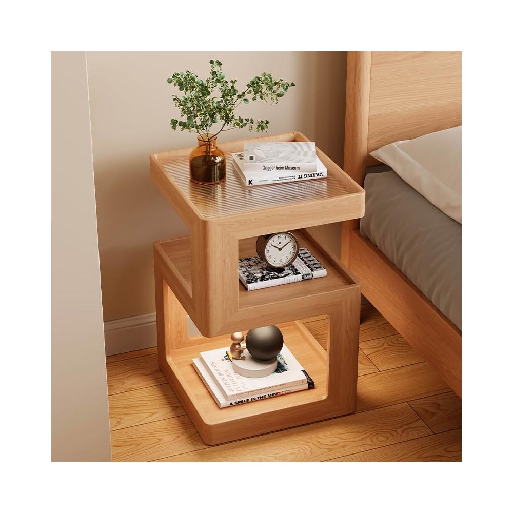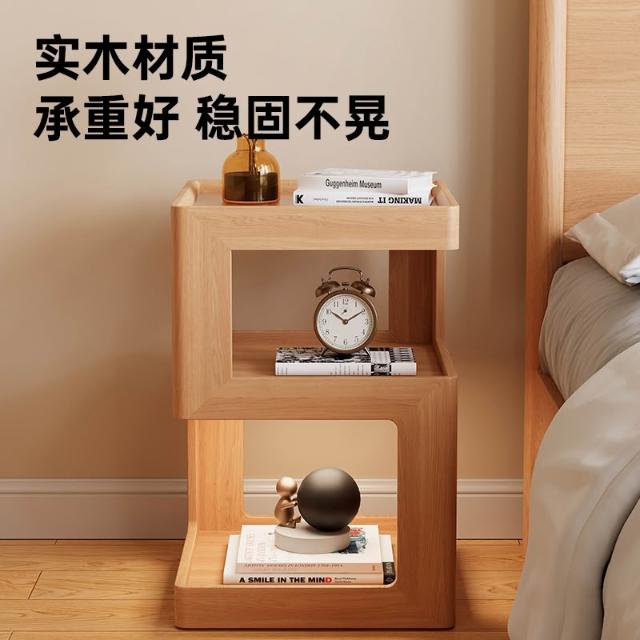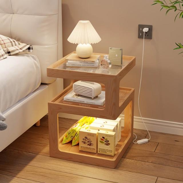 🎇造型特色帶燈床頭櫃 帶燈實木床頭櫃 床頭置物架 簡約現代小型櫃子 2025新款原木風超窄小邊幾