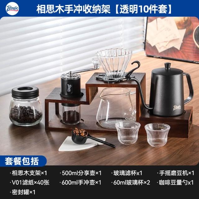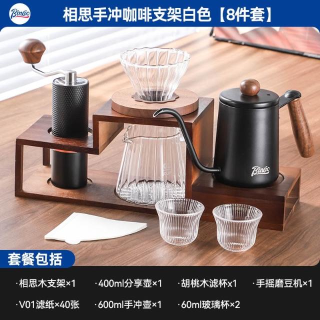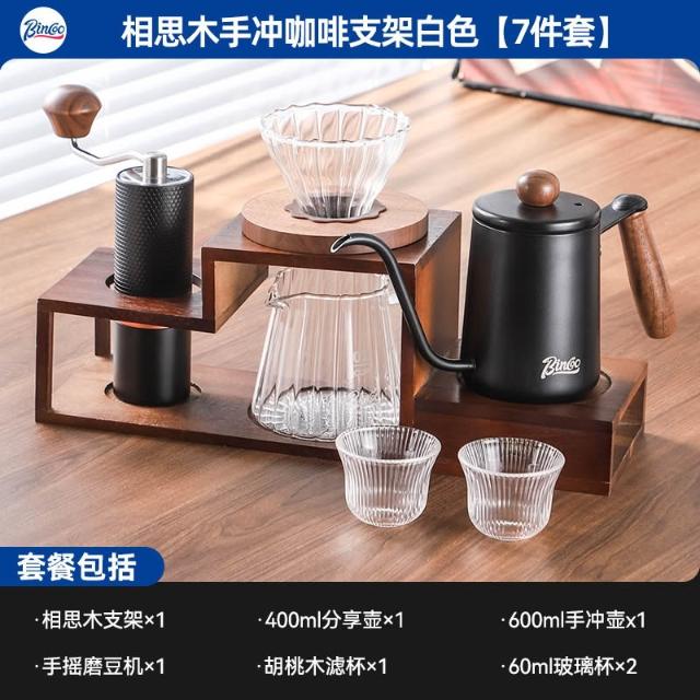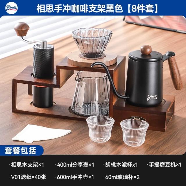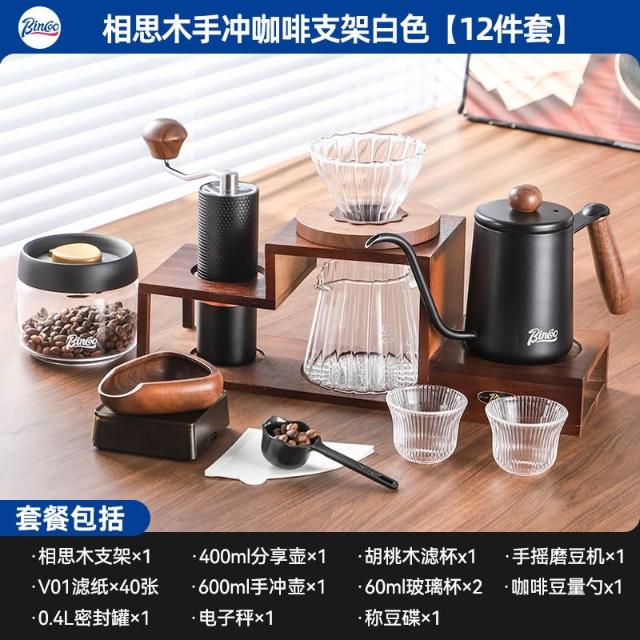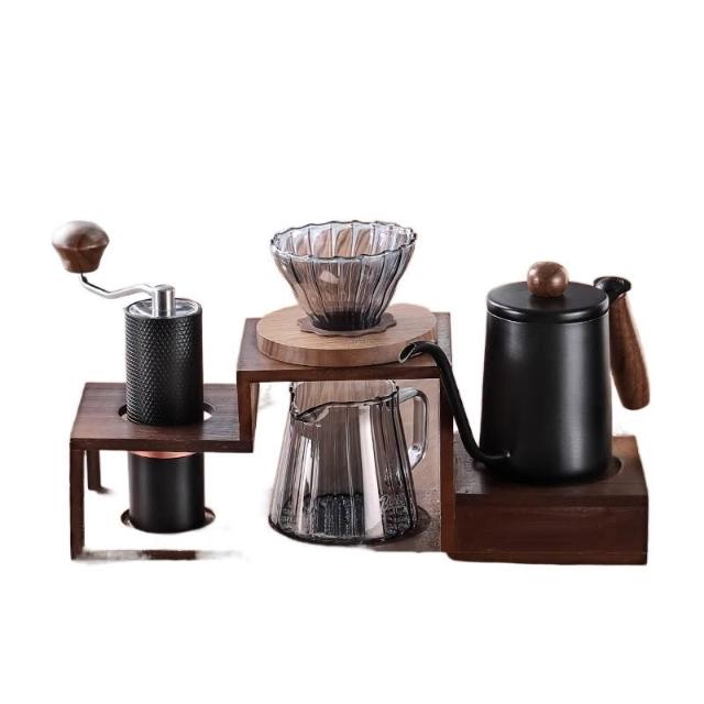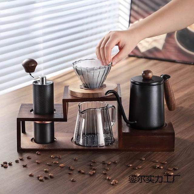 手沖咖啡壺套裝手磨咖啡機手搖收納支架木質咖啡手沖壺全套