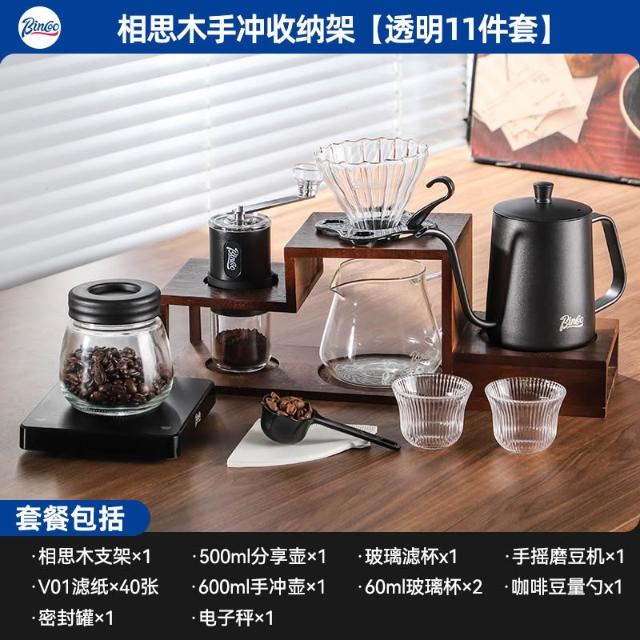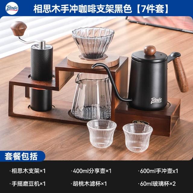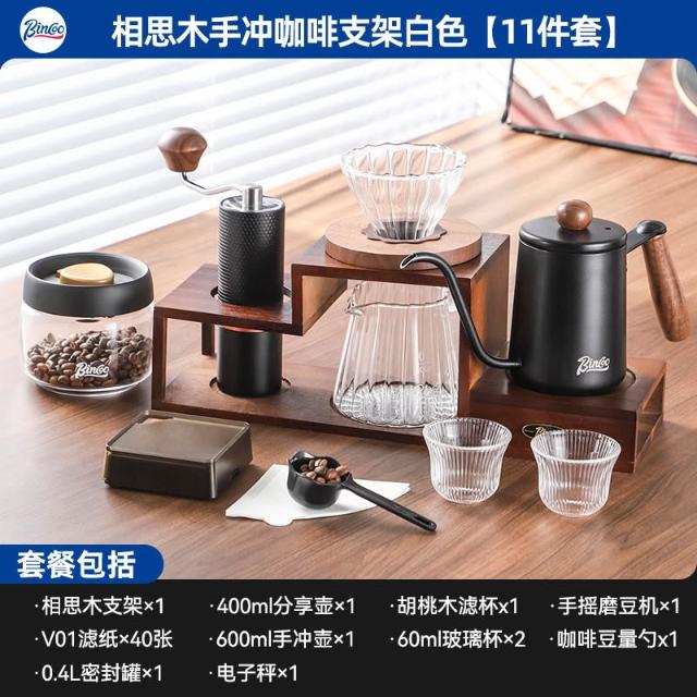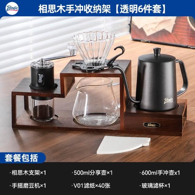 手沖咖啡壺套裝手磨咖啡機手搖收納支架木質咖啡手沖壺全套