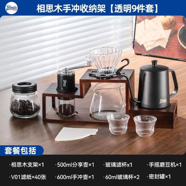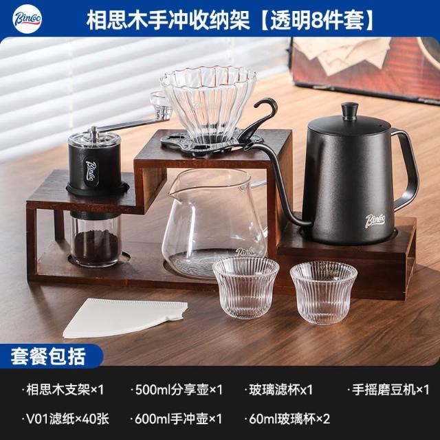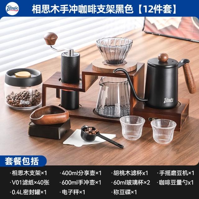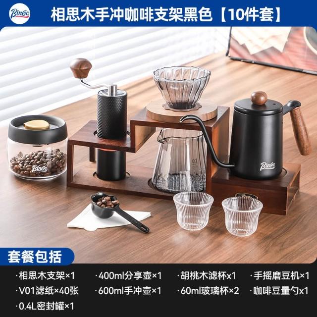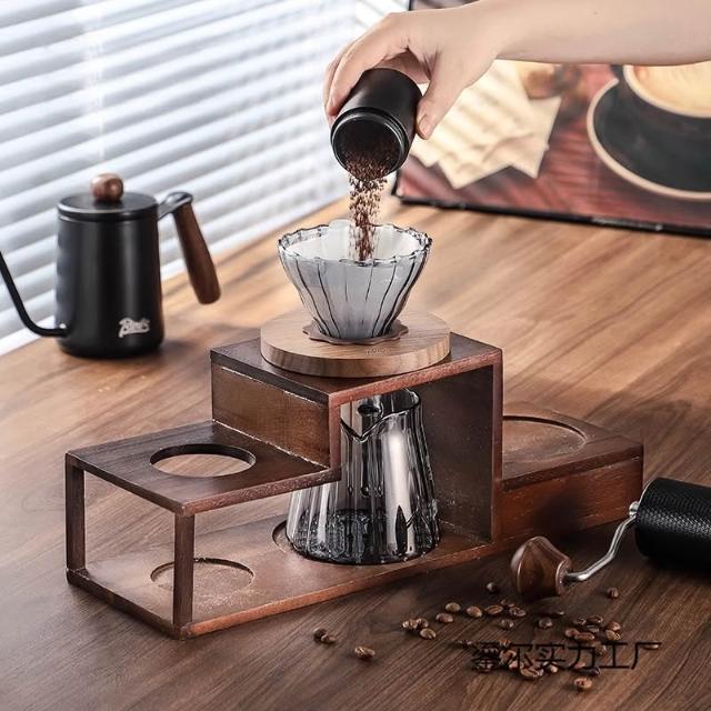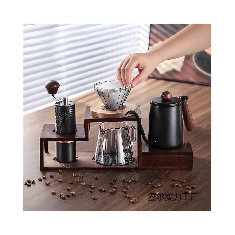手沖咖啡壺套裝手磨咖啡機手搖收納支架木質咖啡手沖壺全套