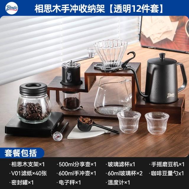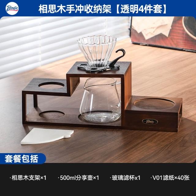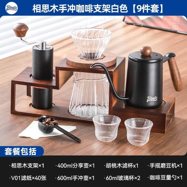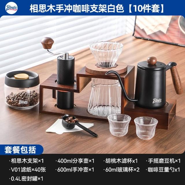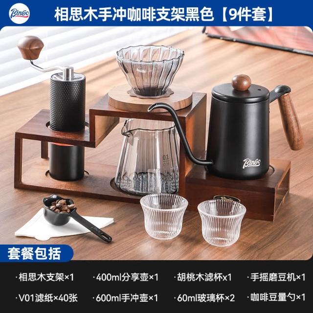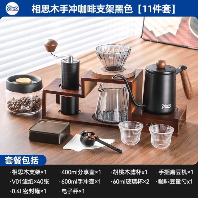 手沖咖啡壺套裝手磨咖啡機手搖收納支架木質咖啡手沖壺全套