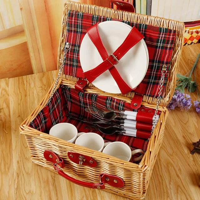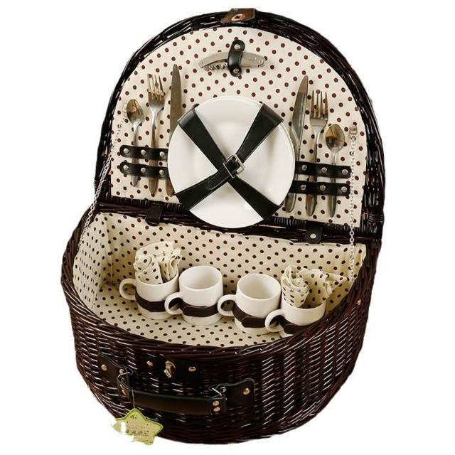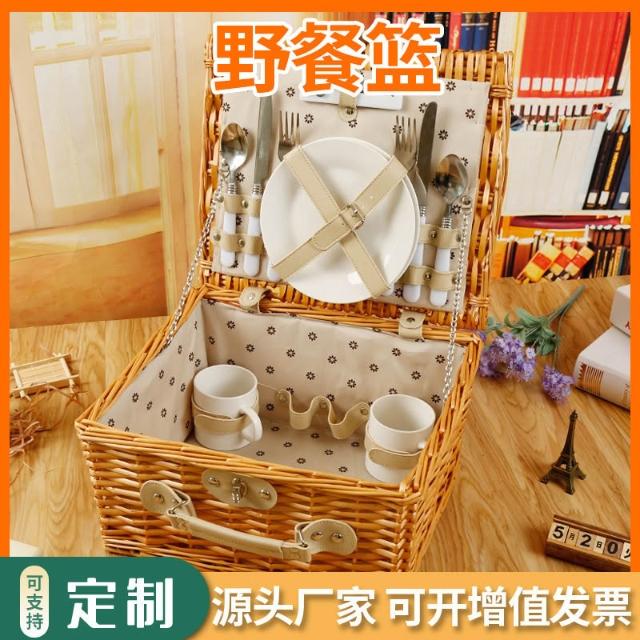 定制加工柳編野餐籃 旅遊野炊籃野餐籃藤編戶外野餐籃食品收納籃