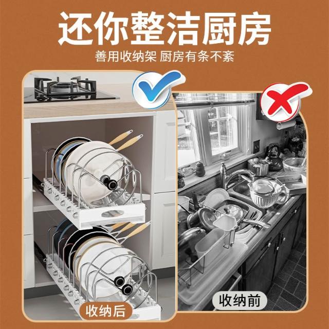 廚房可調節鍋具收納架鍋架平底鍋置物架鍋蓋收納架鍋蓋架收納神器