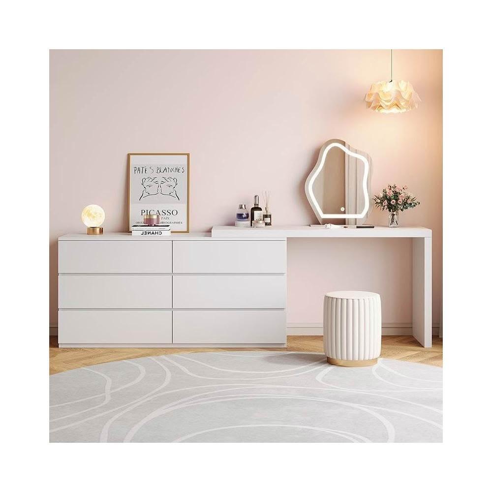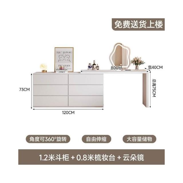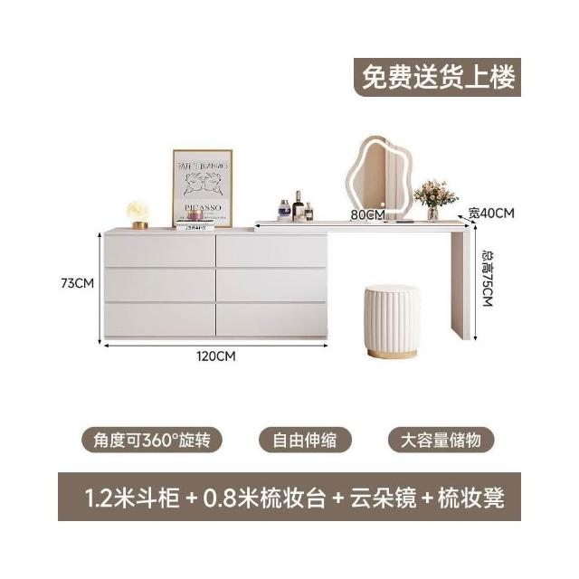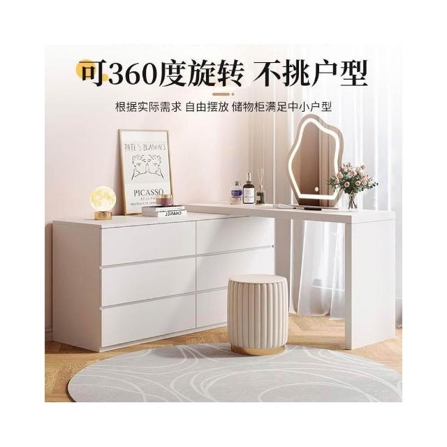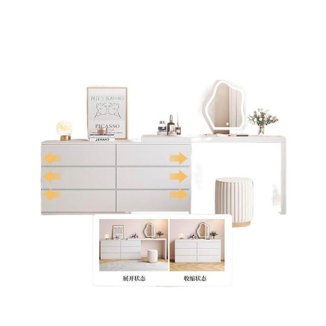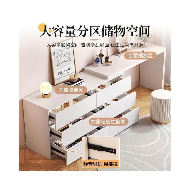 梳粧檯鬥櫃一體家用臥室現代簡約小戶型可伸縮奶油風化妝桌收納櫃