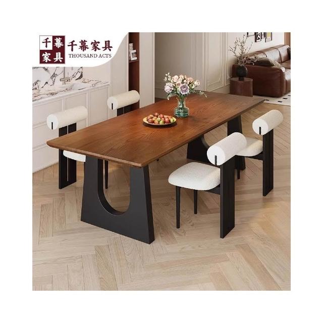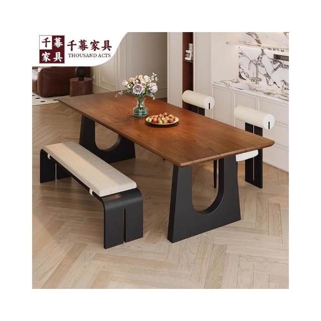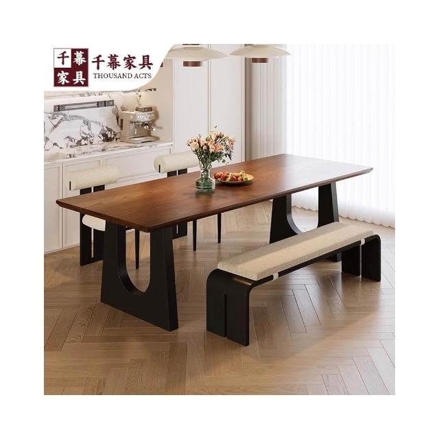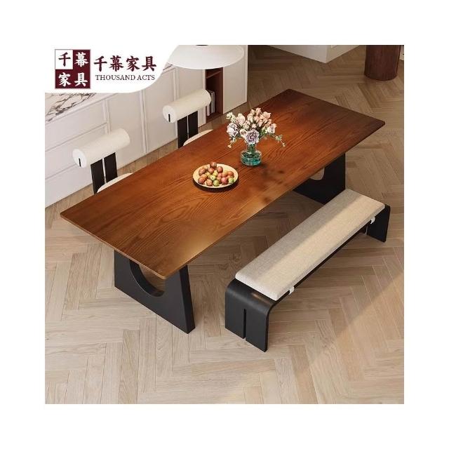 千慕中古風實木餐桌客廳家用書桌靠牆吃飯桌白蠟木島臺餐桌椅組合