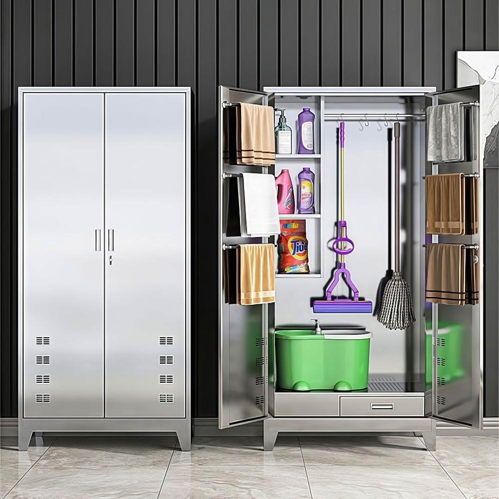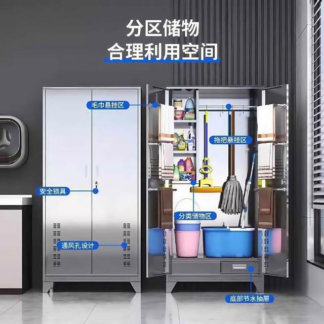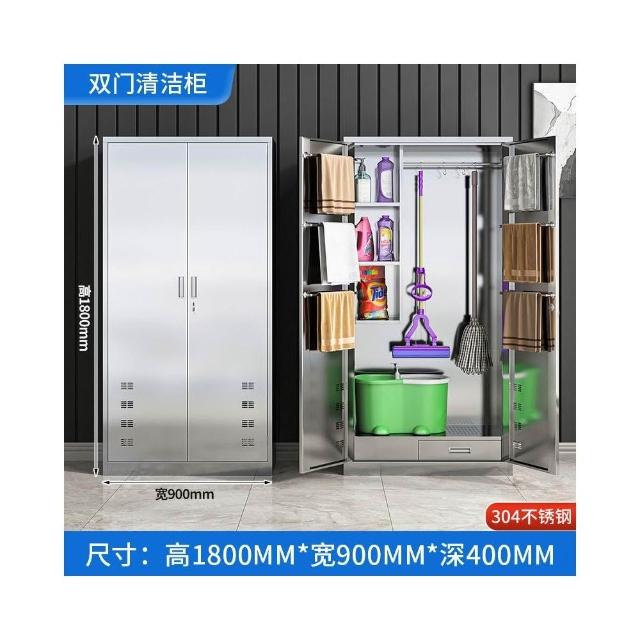 304不銹鋼清潔櫃工廠學校抹布拖把保潔儲物櫃陽臺雜物工具收納櫃
