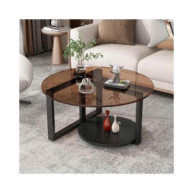 圓形茶几家用客廳鋼化玻璃茶几小戶型陽臺出租房圓形玻璃小圓桌