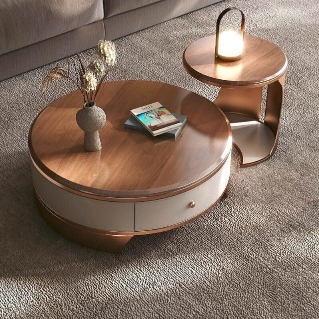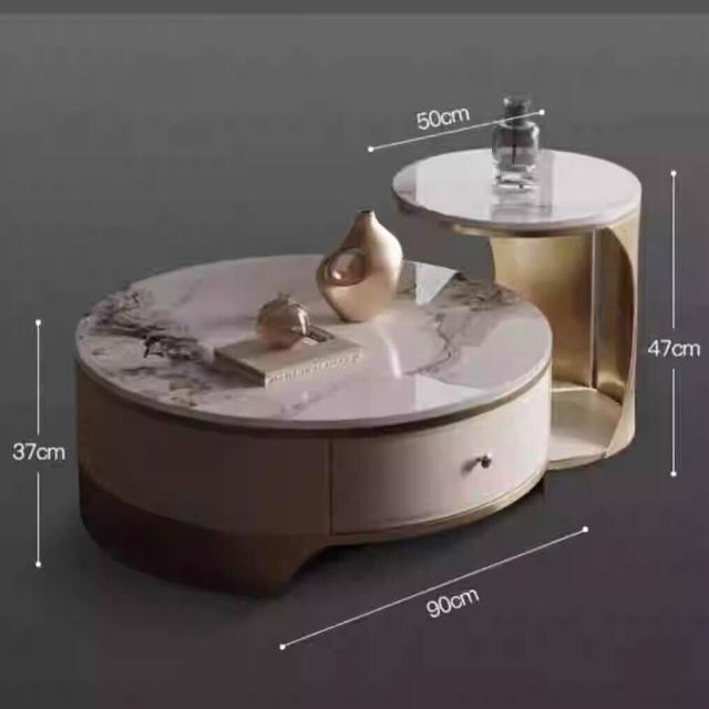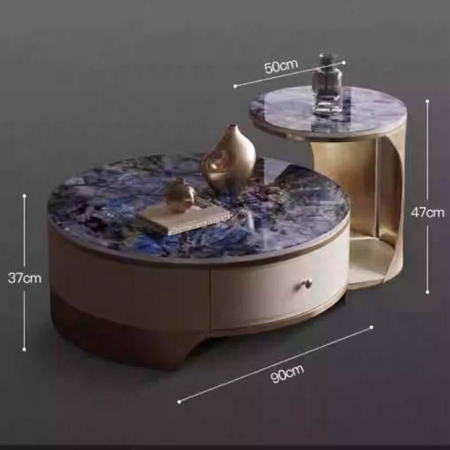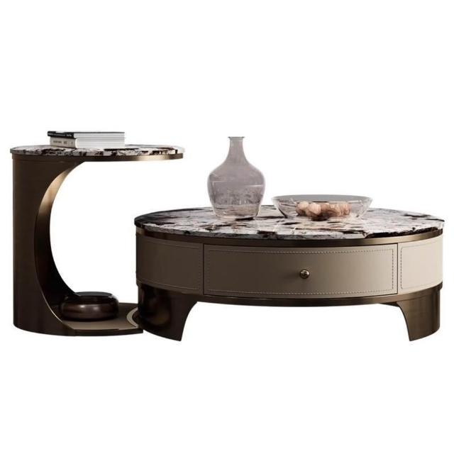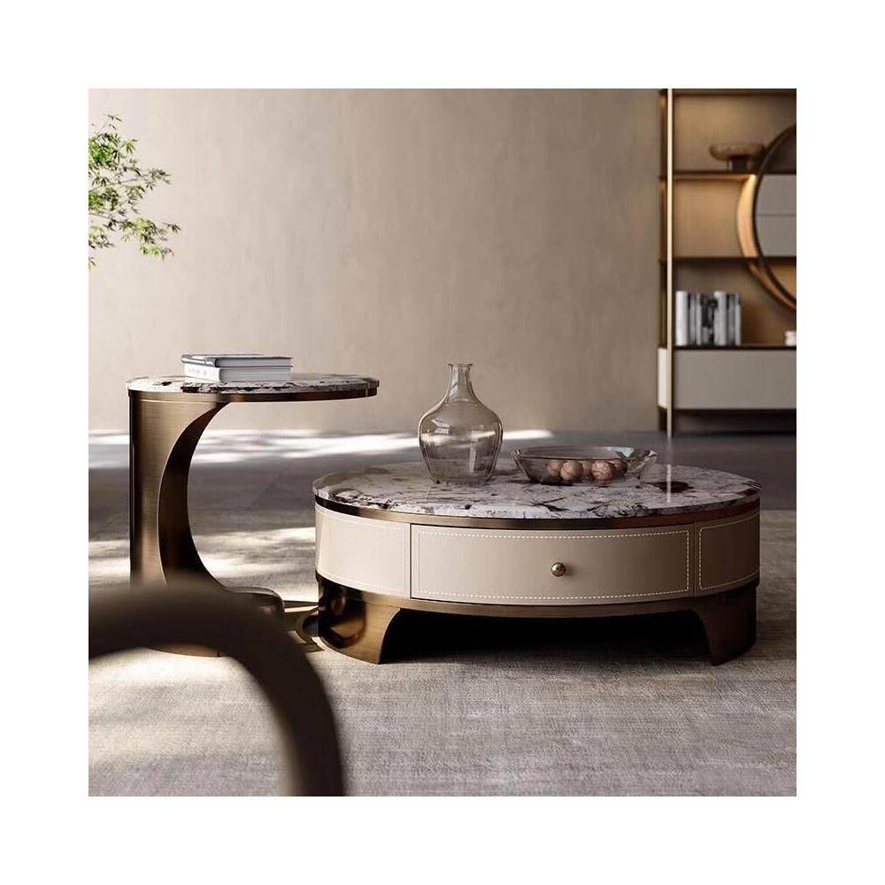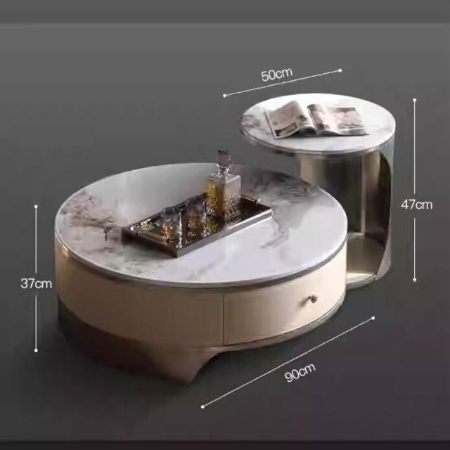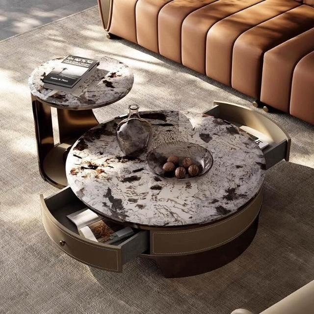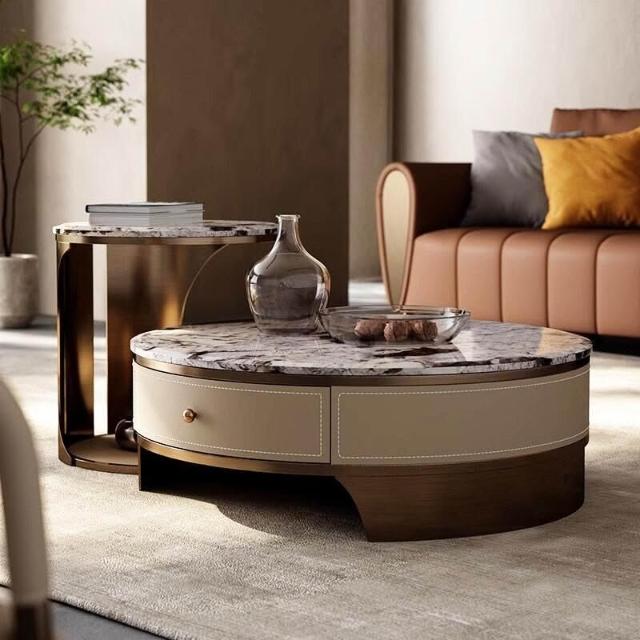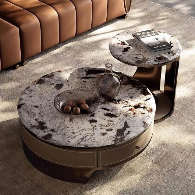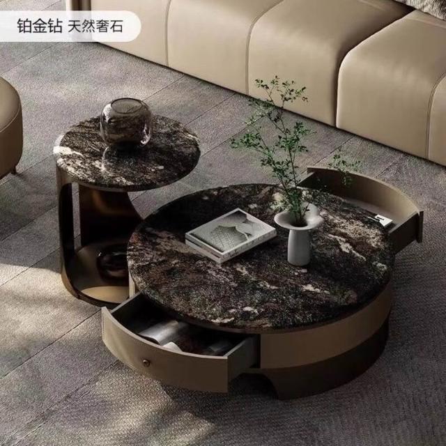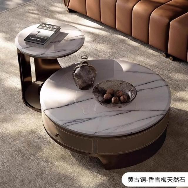 天然圓形大理石茶幾客廳2025新款輕奢高級感小戶型家用高端奢石