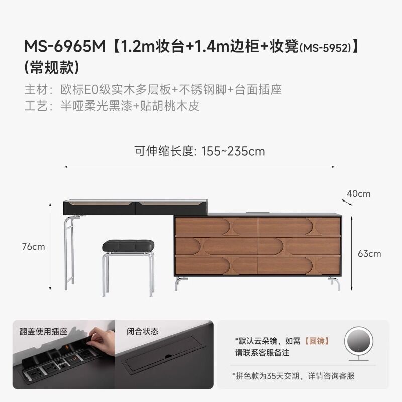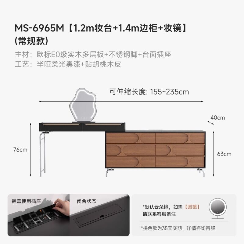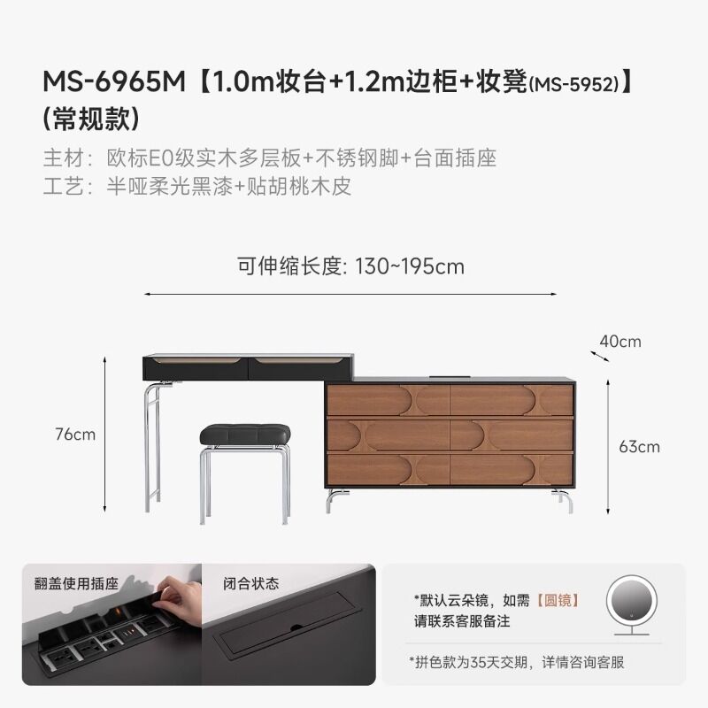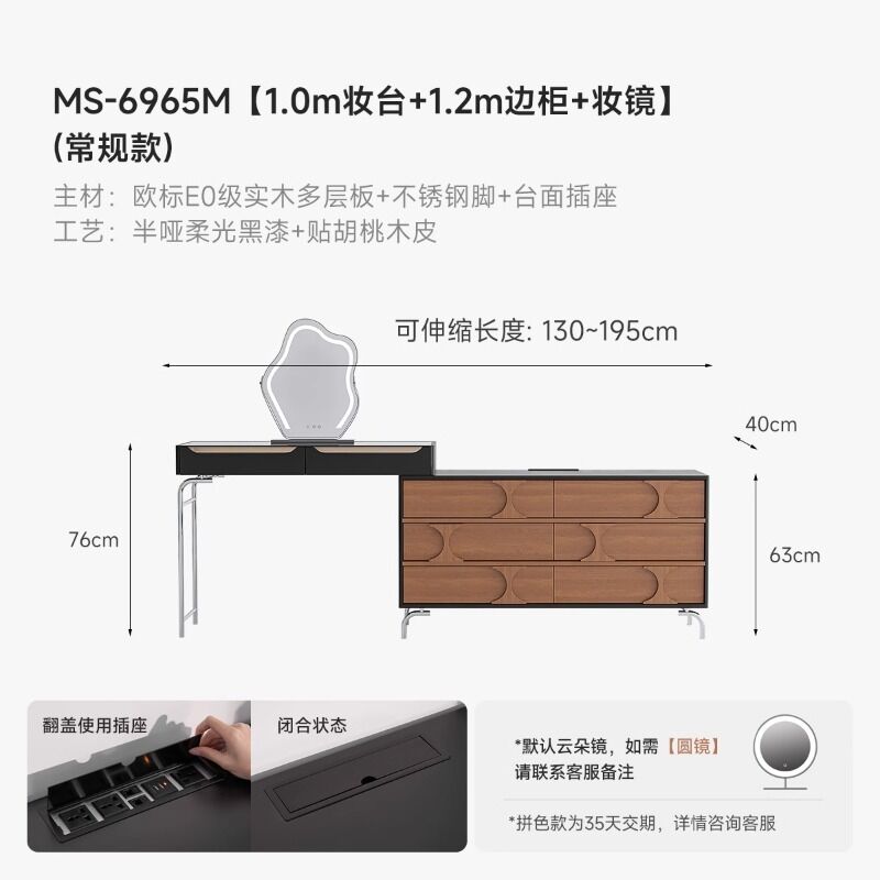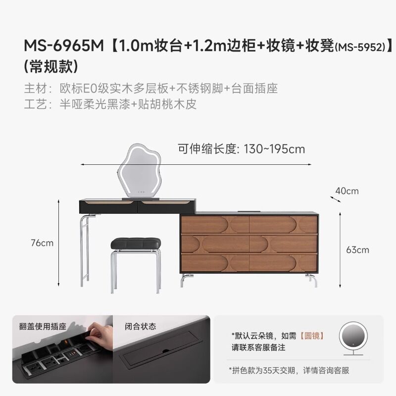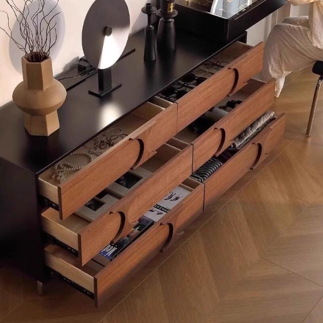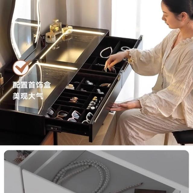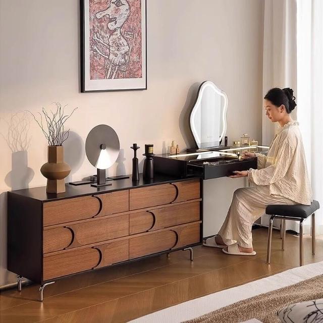 中古風實木梳妝臺鬥櫃一體小戶型化妝臺臥室化妝桌伸縮床尾收納櫃