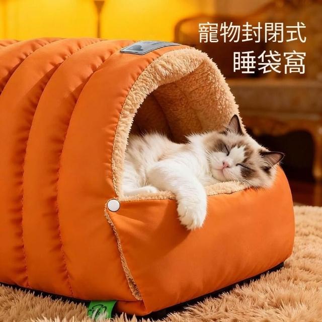 封閉式睡袋貓窩寵物窩 冬天保暖狗窩 仿皮半封閉式防風貓窩