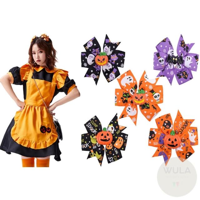 南瓜蝙蝠髮夾 WULA烏拉 南瓜夾子 萬聖節飾品 萬聖節髮夾 南瓜髮夾 夾子 蝴蝶結髮夾子 蝙蝠髮夾