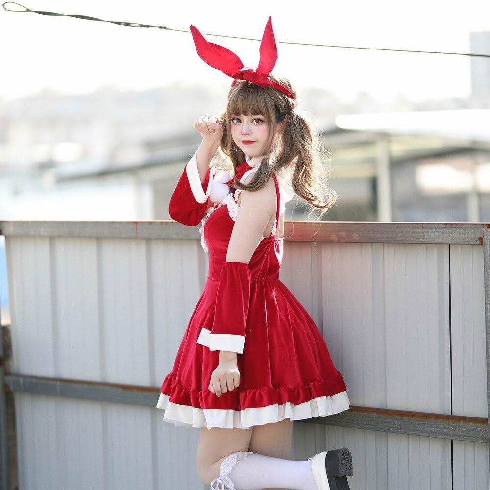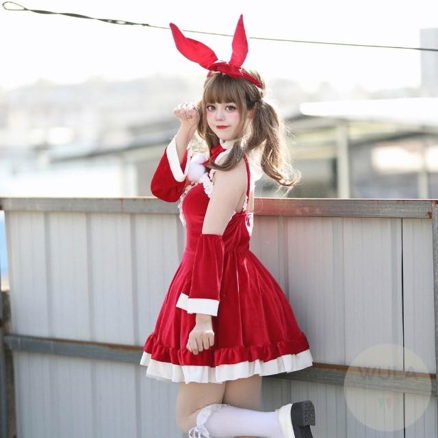 聖誕兔女郎裝 WULA烏拉 聖誕女僕裝 紅色女僕 大尺碼聖誕裙 聖誕女裝 聖誕裙子 大尺碼聖誕女僕裝