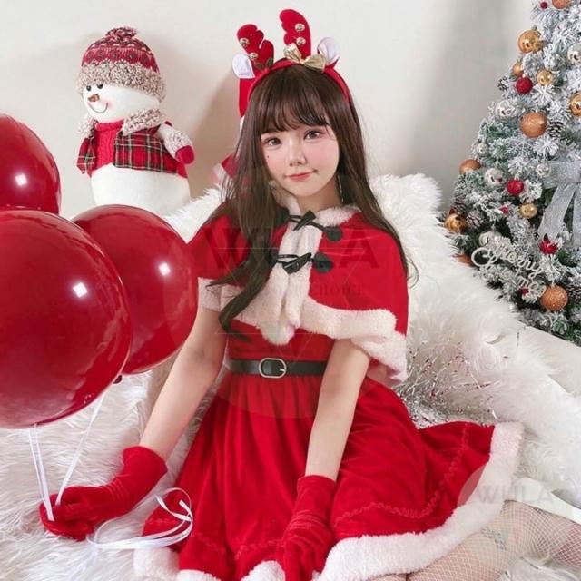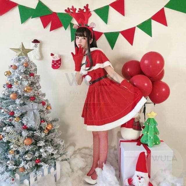 聖誕披肩連衣裙 WULA烏拉 聖誕麋鹿裝 女聖誕服裝 聖誕裙裝 紅色聖誕服裝 聖誕節衣服