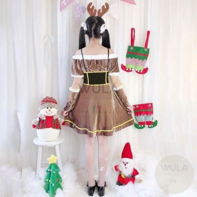 麋鹿拉繩裙裝成人版 WULA烏拉 麋鹿女裝 聖誕麋鹿裝 麋鹿裙裝 聖誕老人 女聖誕裝(麋鹿女裝)