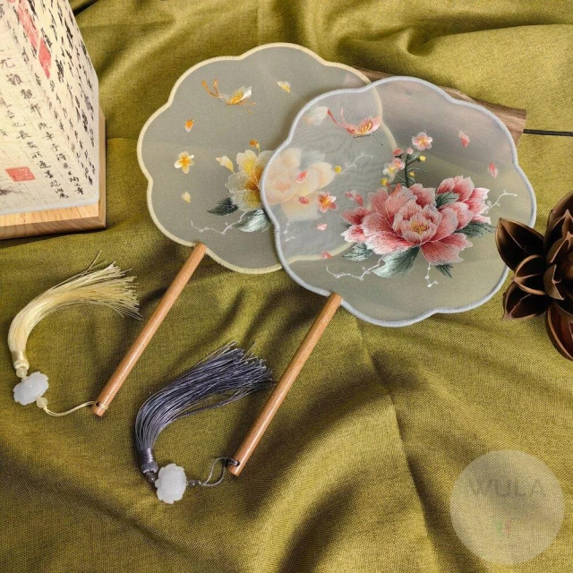 刺繡古風圓扇多款 WULA烏拉 團扇 刺繡扇 花扇 玉兔 古風扇 木扇 中秋 扇子 木柄扇 嫦娥