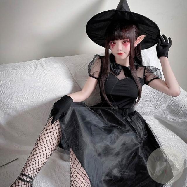 黑色魔法女巫裝 WULA烏拉 萬聖節女巫裝 萬聖節cos女裝 女巫婆cos 女巫婆衣服 黑魔法衣服