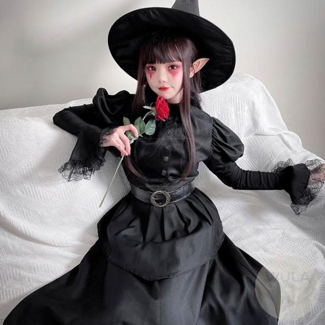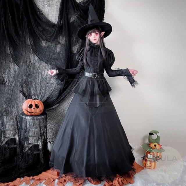 澎袖蕾絲黑女巫 WULA烏拉 萬聖節女巫裝 魔法女巫cos 黑色女巫 黑魔女屋衣服 女巫衣服 女巫服