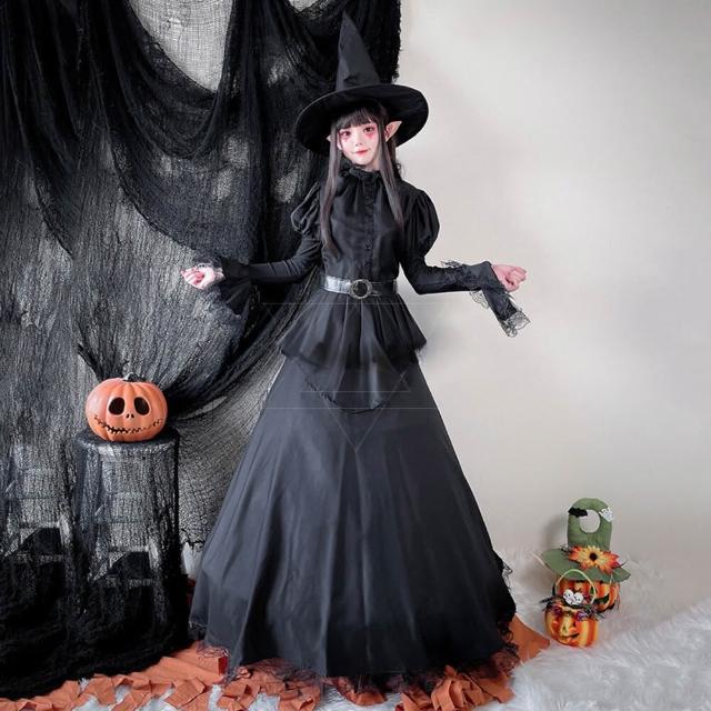 澎袖蕾絲黑女巫 WULA烏拉 萬聖節女巫裝 魔法女巫cos 黑色女巫 黑魔女屋衣服 女巫衣服 女巫服