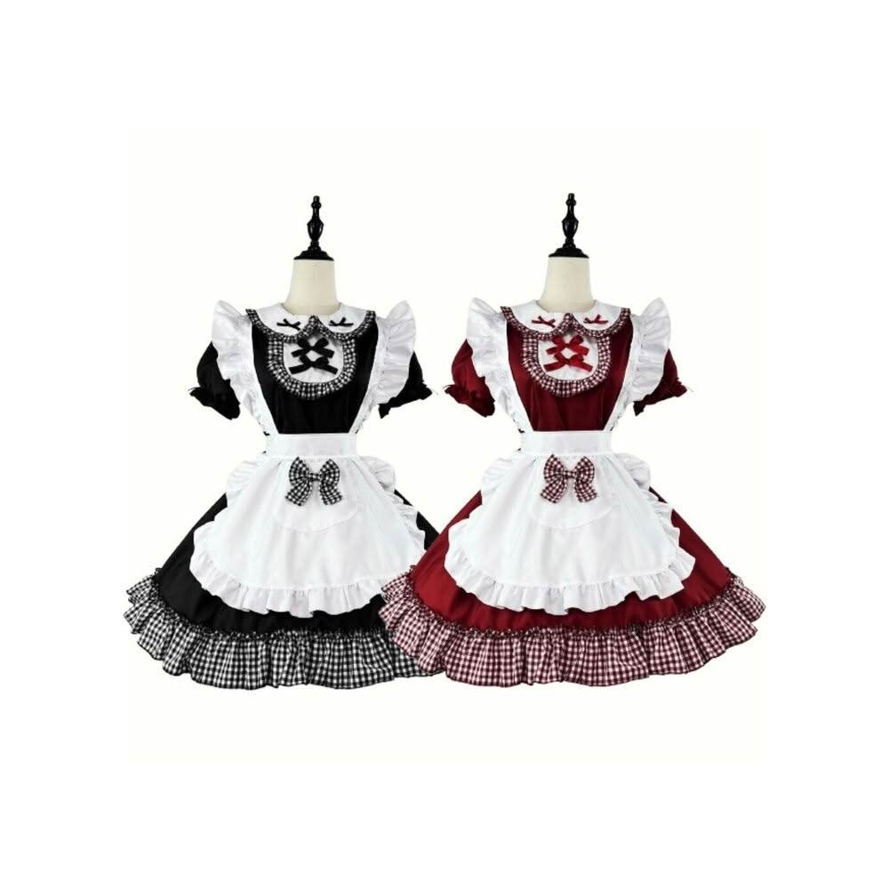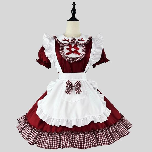 格紋蝶結聖誕女僕裝 WULA烏拉 紅色聖誕女裝 女聖誕裝 女聖誕裙 大尺碼聖誕裝 大尺碼聖誕女僕裝