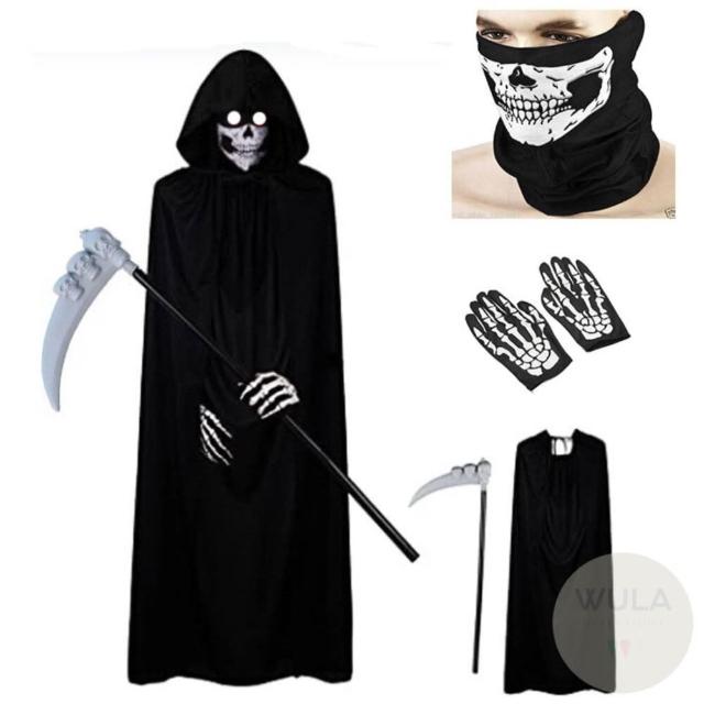 死神骷顱套裝 WULA烏拉 萬聖節死神裝 骷顱裝 死神cos 萬聖節死神服裝 鬼怪服裝 鬼神服裝 黑