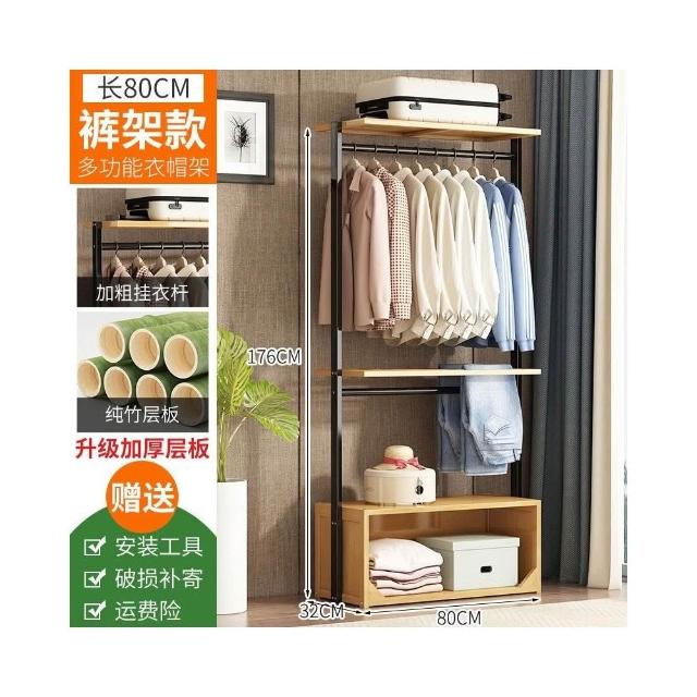 衣帽架實木大衣櫃落地傢用臥室立式置物架簡約現代掛衣服架子簡易