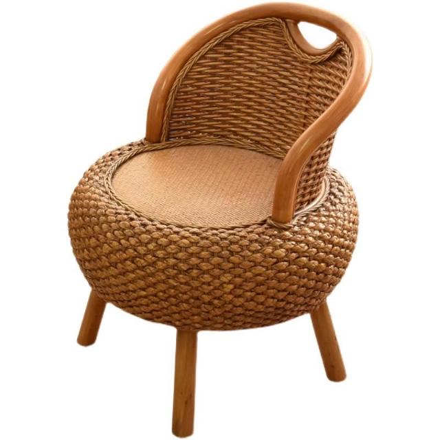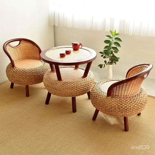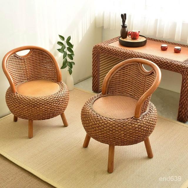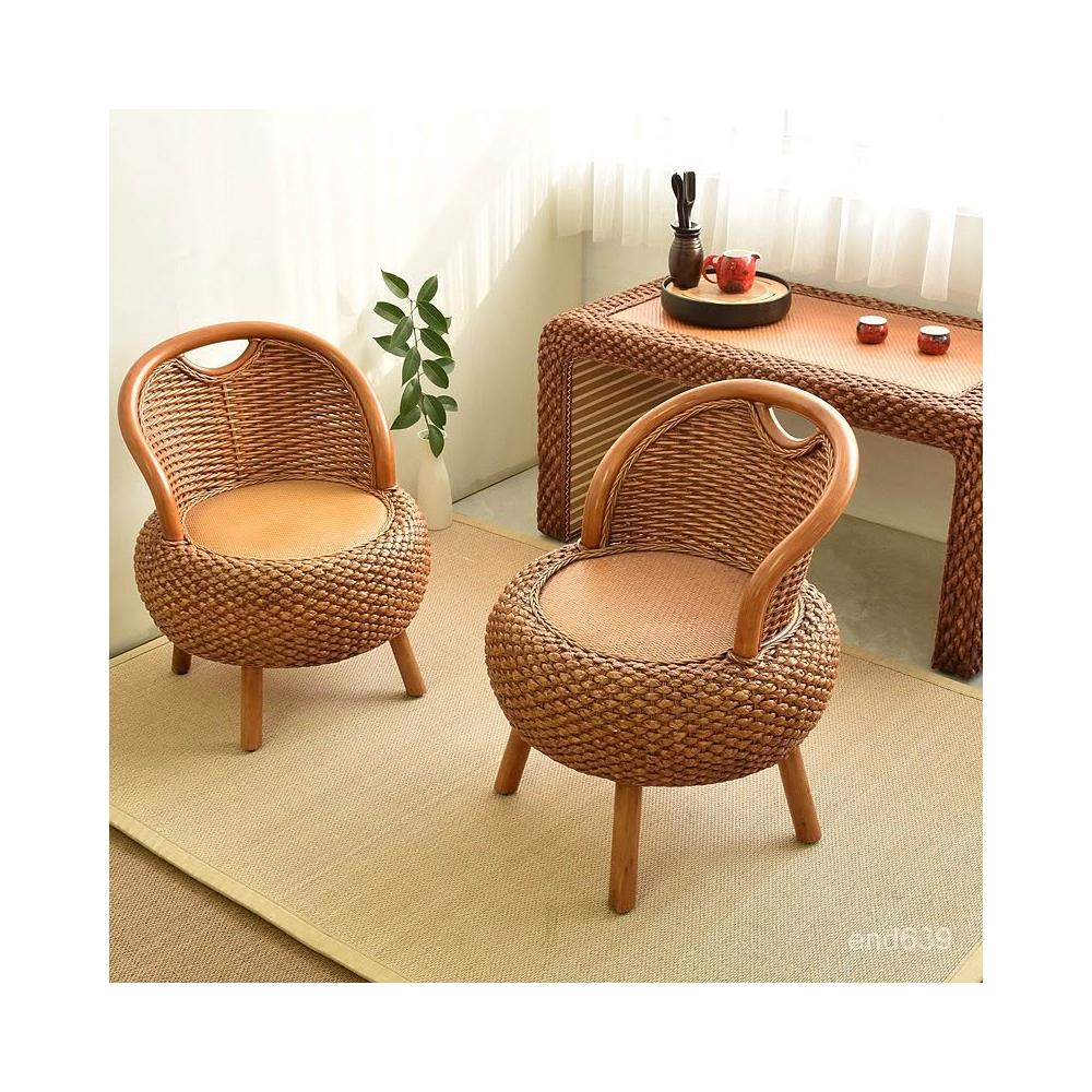 {華景家具城}手工編織藤椅天然真藤家用靠背座椅陽台矮款簡約三件套藤編小椅子
