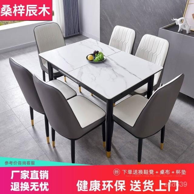 大理石岩板餐桌 伸縮餐桌 小戶型家用 北歐桌子椅子 岩板實木 長方形折疊餐桌 简约轻奢伸缩折叠饭桌 意式极简餐桌