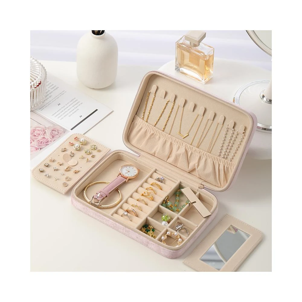 天鵝絨少女首飾收納盒多功能戒指項鏈耳釘手錶首飾盒批發鏡子