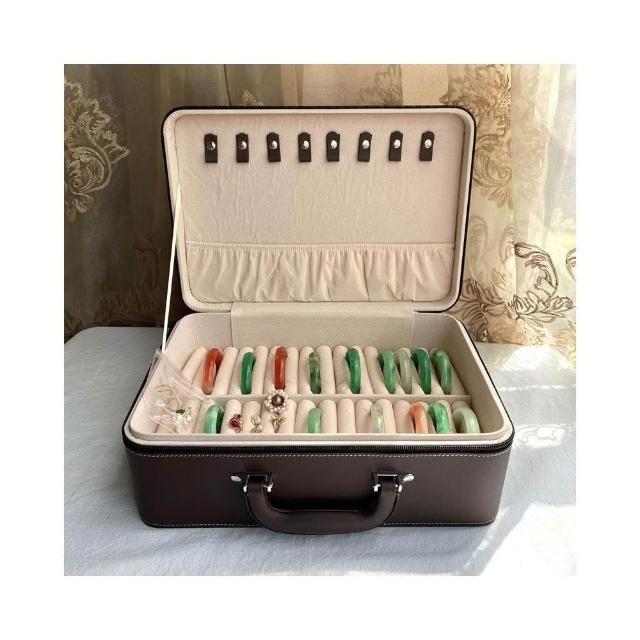跨境手鐲盒手提展示盒多位首飾收納盒高級感便攜高檔翡翠玉鐲箱