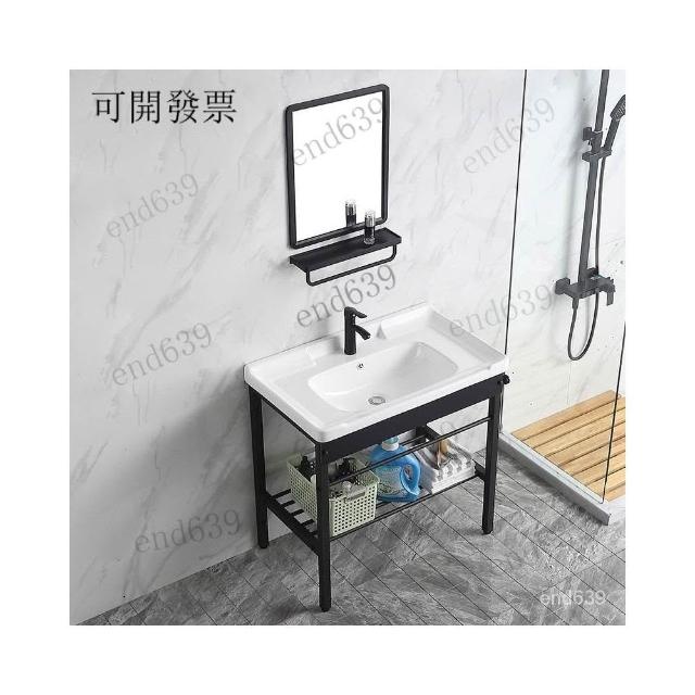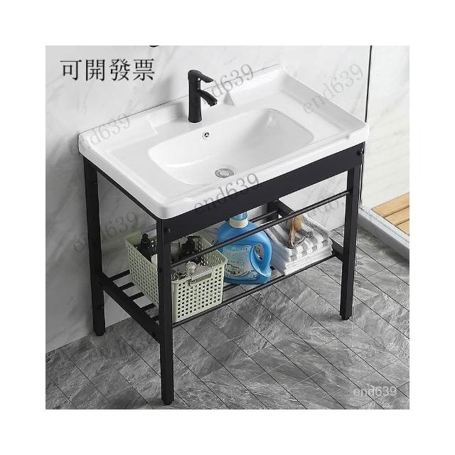 洗手池 一體式洗手盆 黑色不銹鋼支架陶瓷洗衣盆衛生間臺盆洗手池帶搓闆陽臺水槽洗臉盆