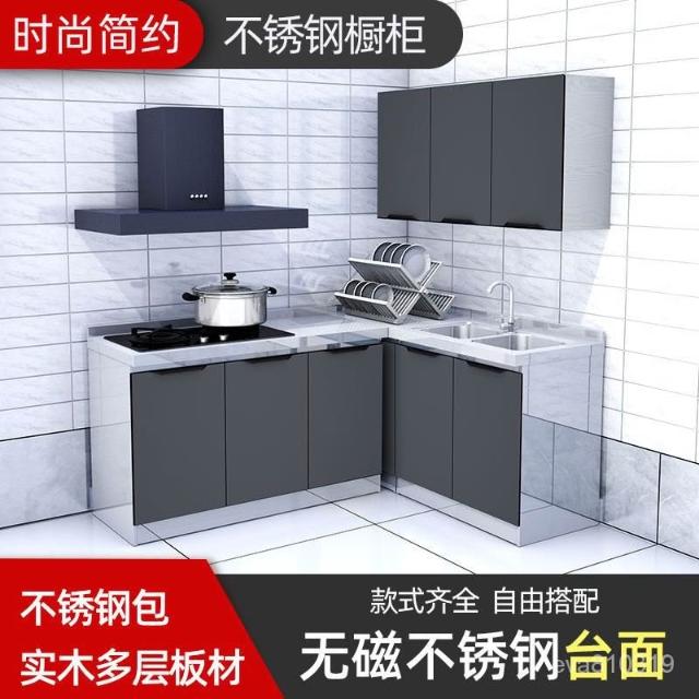 熱賣免運 不銹鋼櫥櫃 簡易竈臺櫃 廚房一體櫃 廚櫃 經濟型 餐邊櫃 傢用組裝櫃子 廚房收納櫃 灶台 組合櫃 YSJI