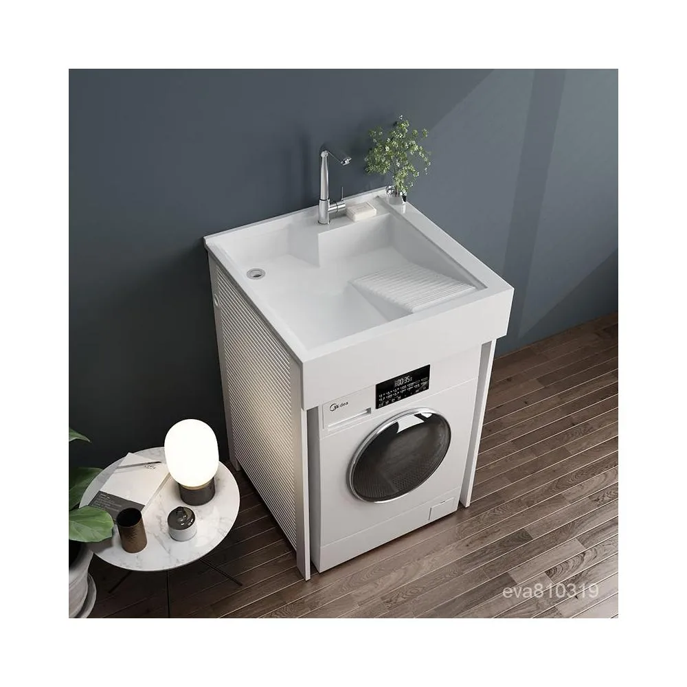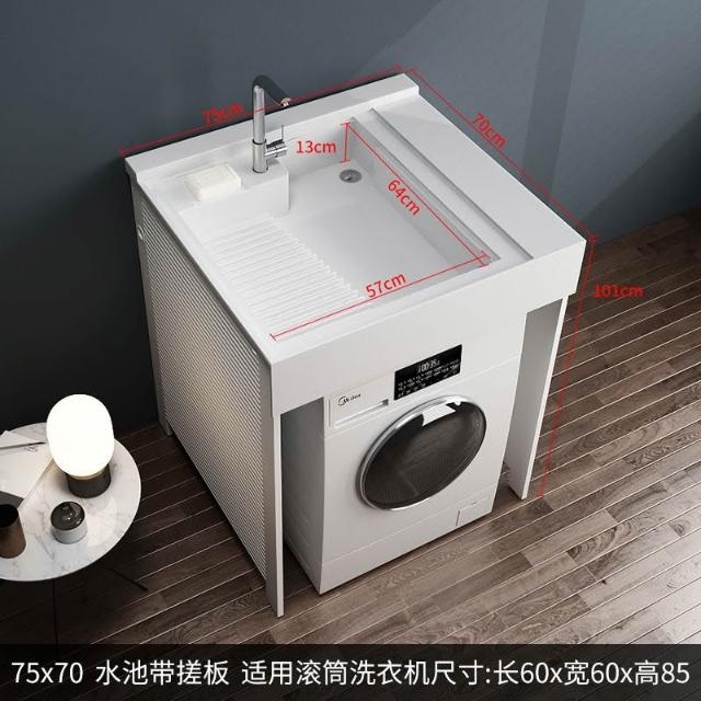 熱賣免運 洗衣機櫃小戶型洗衣櫃臉盆搓衣闆洗手盆一體櫃洗衣池陽臺組閤伴侶 AII3