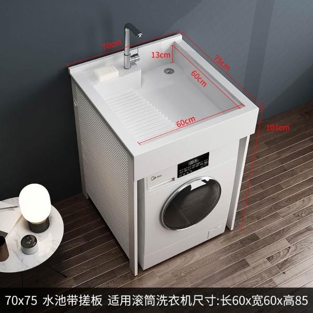 熱賣免運 洗衣機櫃小戶型洗衣櫃臉盆搓衣闆洗手盆一體櫃洗衣池陽臺組閤伴侶 AII3