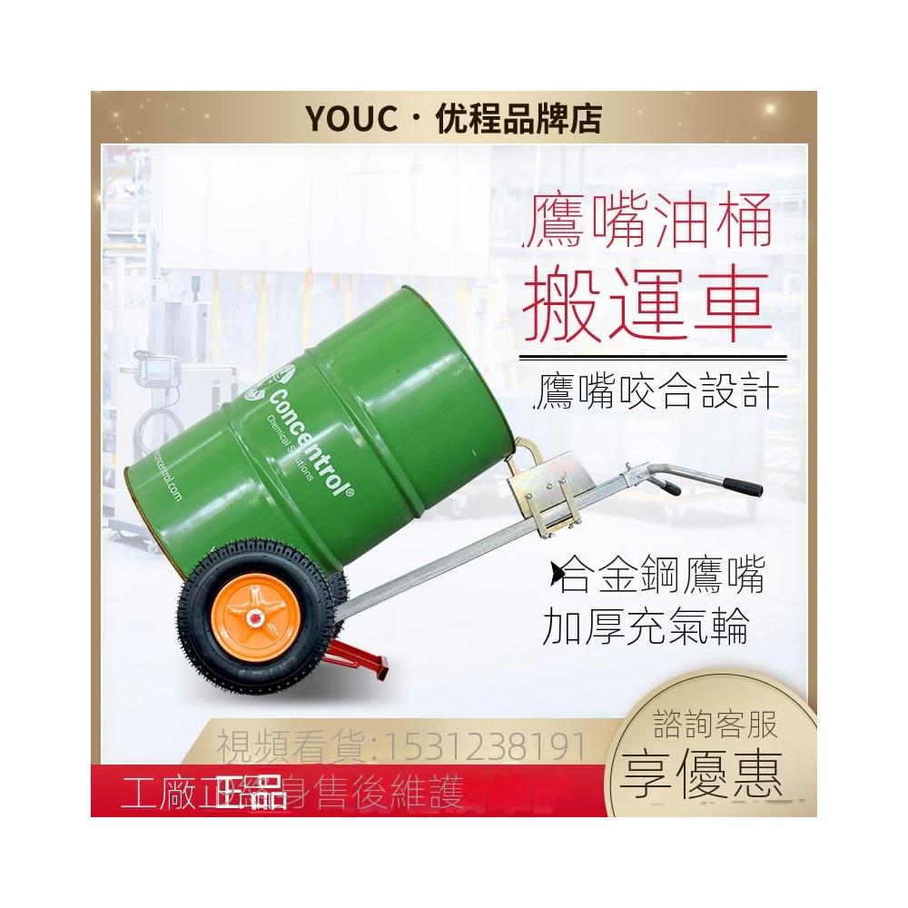 美宜家居工廠店優程450kg咬嘴油桶搬運車 加厚鷹嘴式手推車 鐵桶塑料桶圓桶拖車 手推車 運輸推車