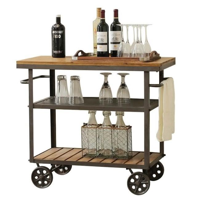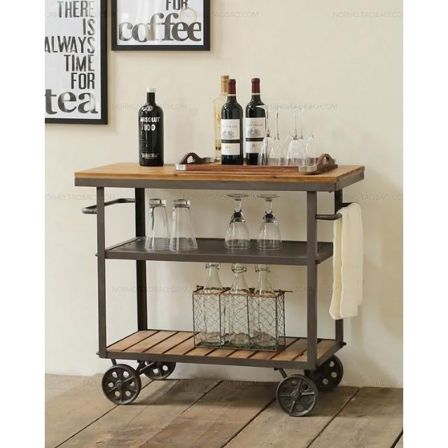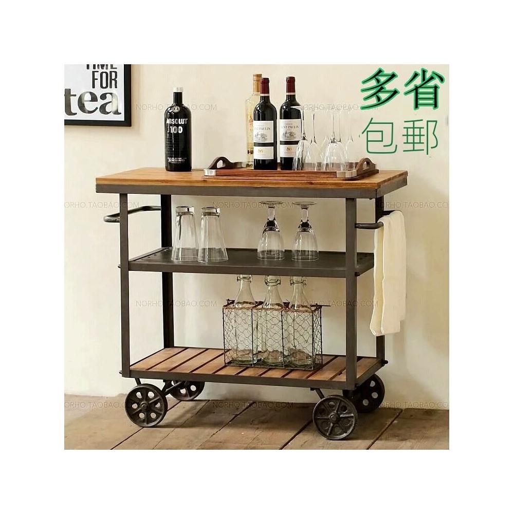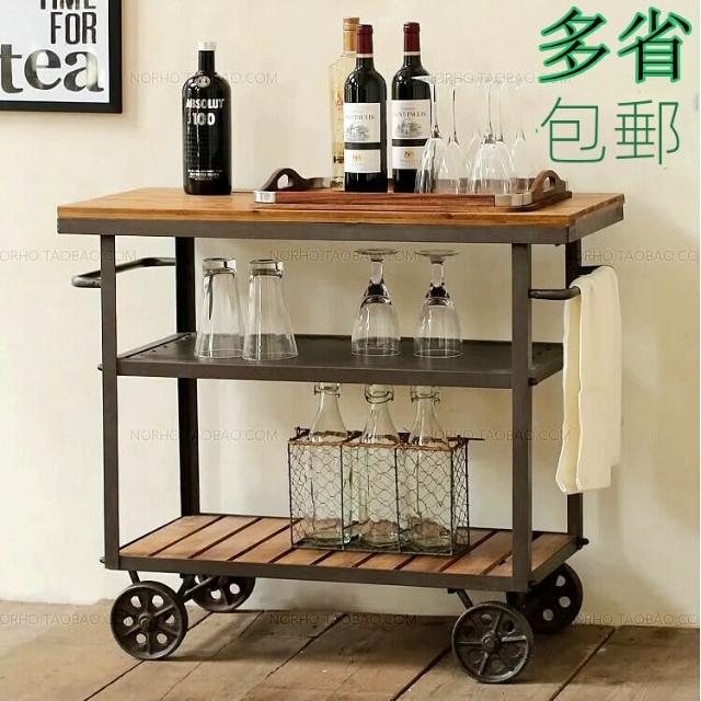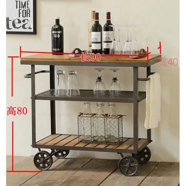 美宜家居工廠店廚房收納櫃//餐櫃/切菜桌/中島電器櫃/收納櫃 美式置物架實木餐邊櫃移動複古鐵藝餐車酒吧小推車酒水車工業風