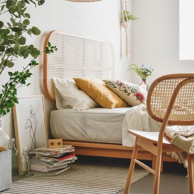 免郵 日式 實木 床頭板 民宿樣板間 背景裝飾 印尼真藤ins風天然藤 條床靠背 實木藤編床頭板 榻榻米床背板裝飾背板