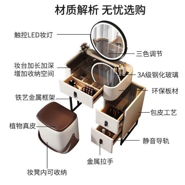 可開發票 廠傢直銷 輕奢高級感簡約現代梳妝臺臥室主臥2022新款小型化妝桌收納櫃一體 5QIC