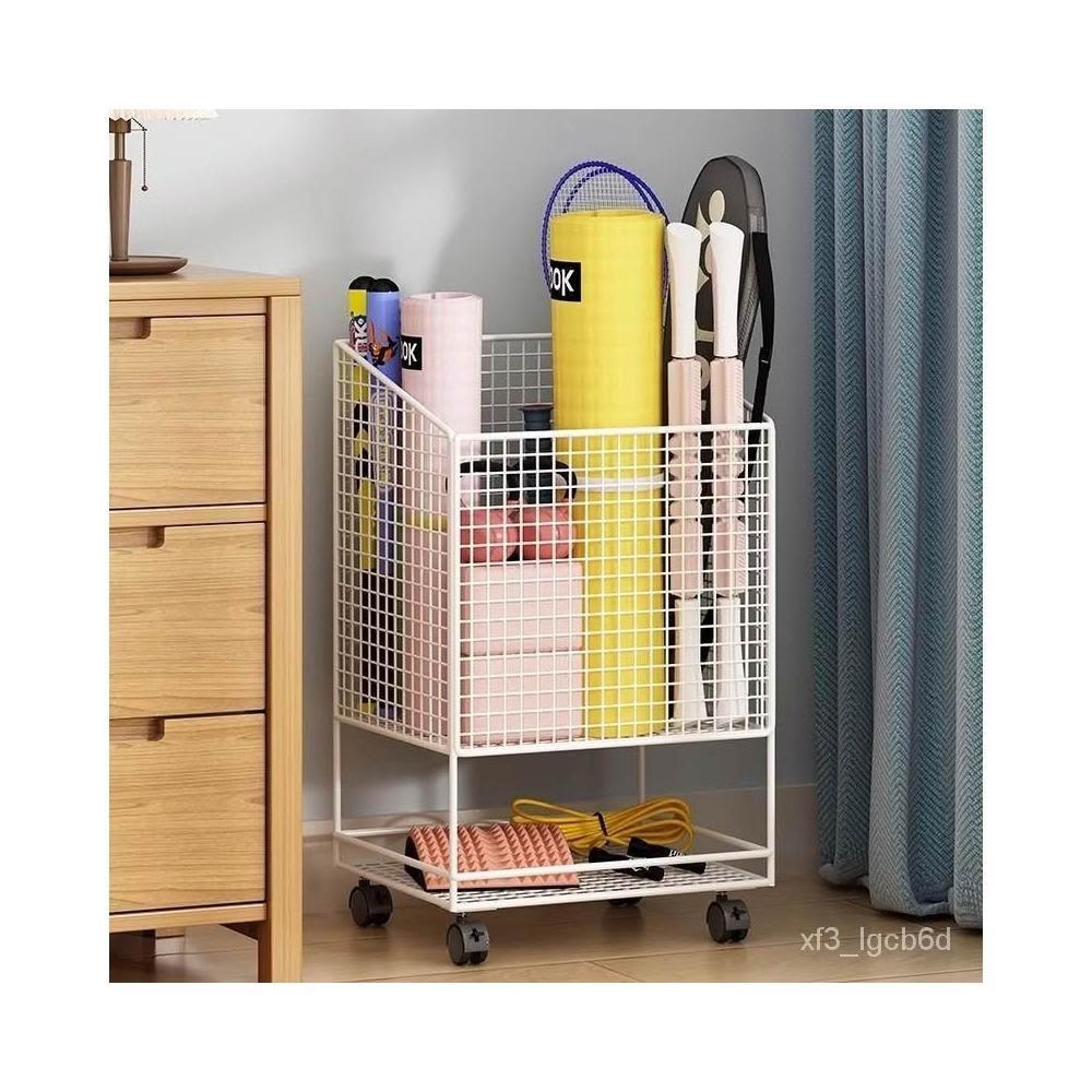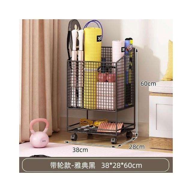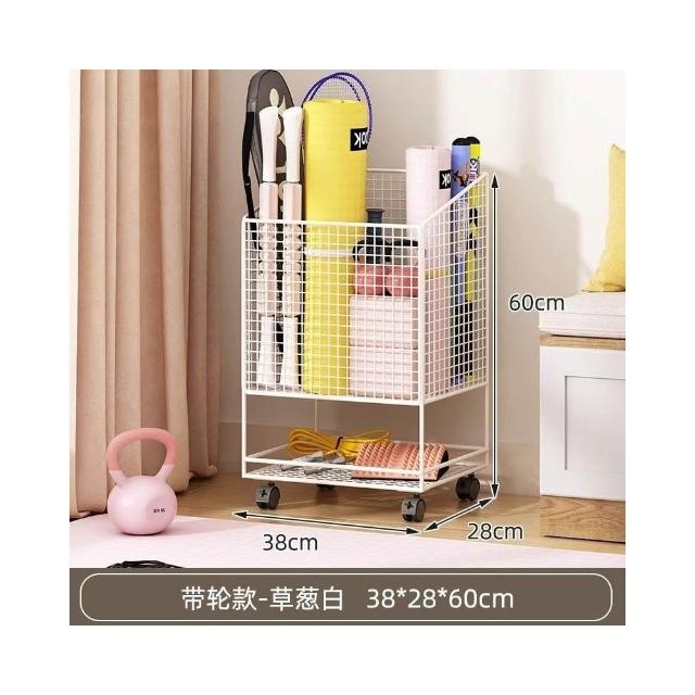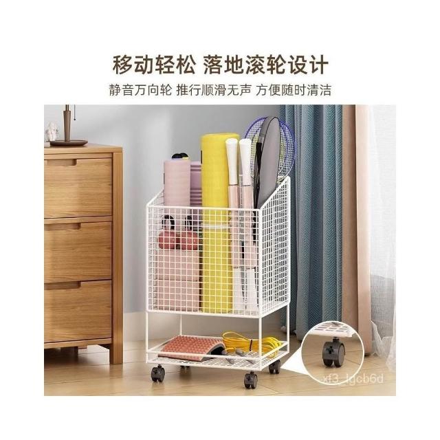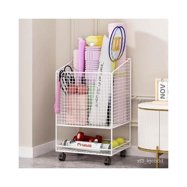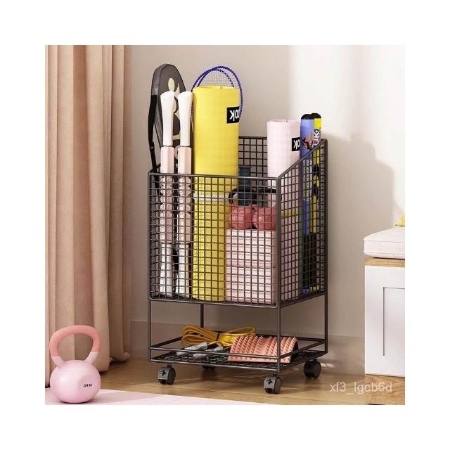 瑜伽墊收納筐帶滑輪網格收納落地運動器材收納架夾縫置物架收納籃
