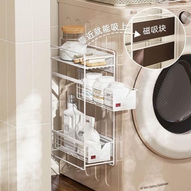 磁吸收納架 洗衣機側邊儲物架 冰箱磁吸收納洗衣液置物架 抽拉式 廚房壁掛置物架 調味料掛架 冰箱側掛架