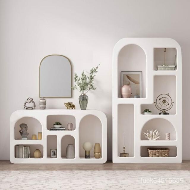 白色洞穴櫃展示櫃産品陳列裝飾櫃子客廳拱形收納落地桌上收納櫃 E0EG