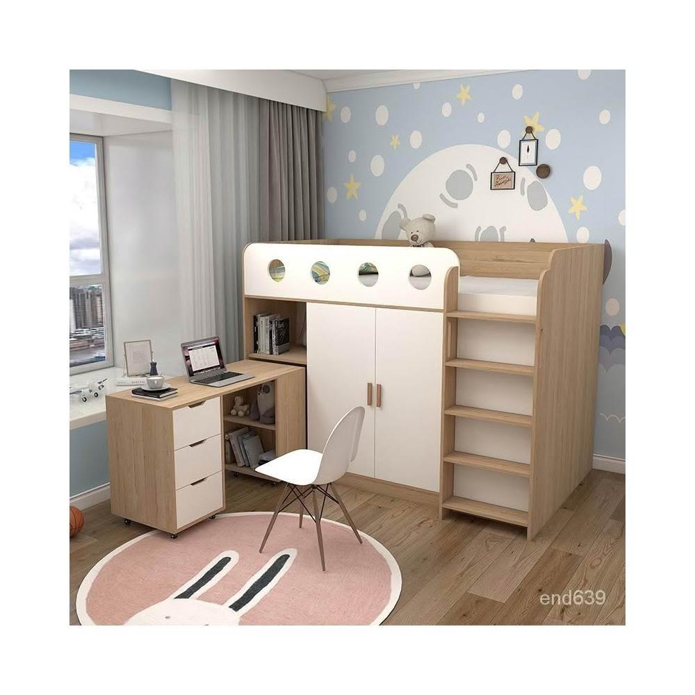 全實木兒童床帶書桌一體多功能半高床小孩床小戶型兒童房家具組合