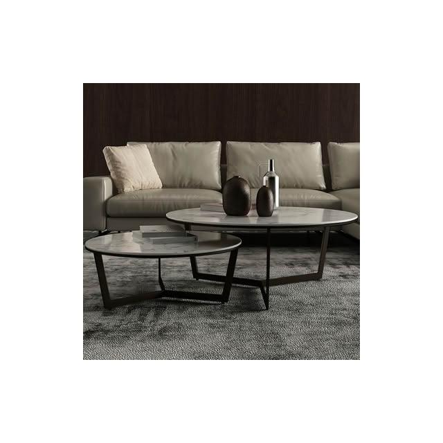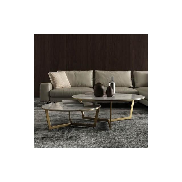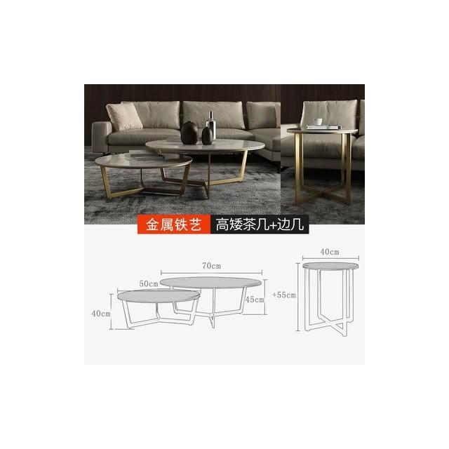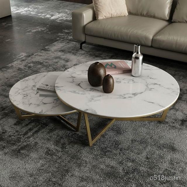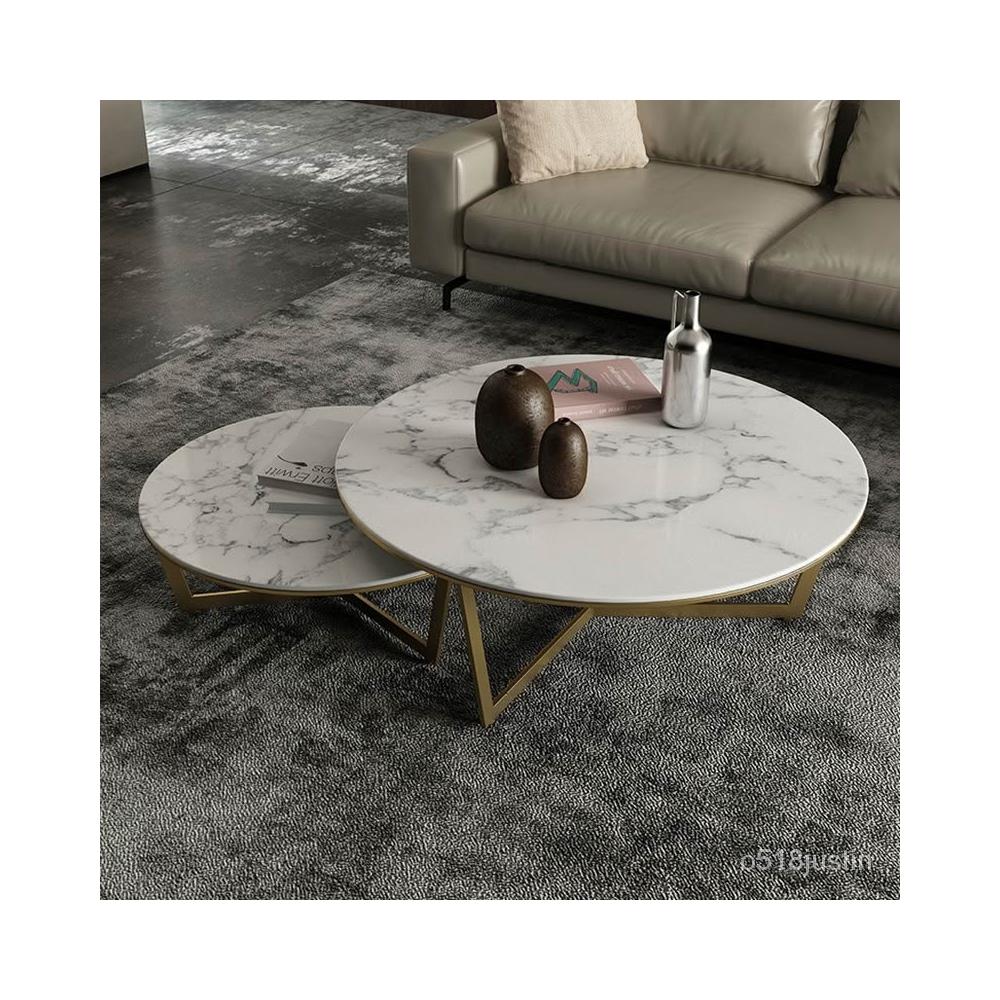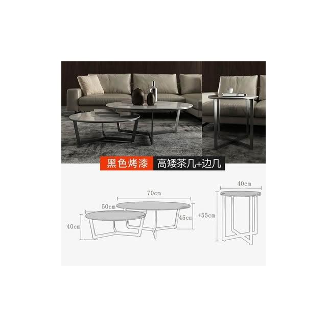 {格林家具城}北歐大理石石板岩板茶幾輕奢簡約現代邊幾小戶型客廳圓形組合小型