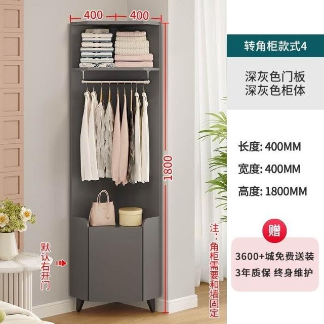 限時優惠 奶油風臥室床頭掛衣櫃 轉角櫃 傢用90度墻角開放衣櫃 衣帽架 置物櫃子 COBS