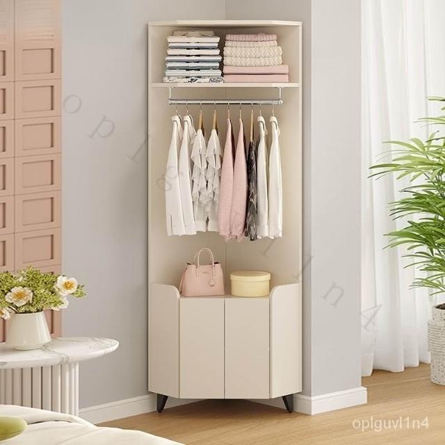 限時優惠 奶油風臥室床頭掛衣櫃 轉角櫃 傢用90度墻角開放衣櫃 衣帽架 置物櫃子 COBS